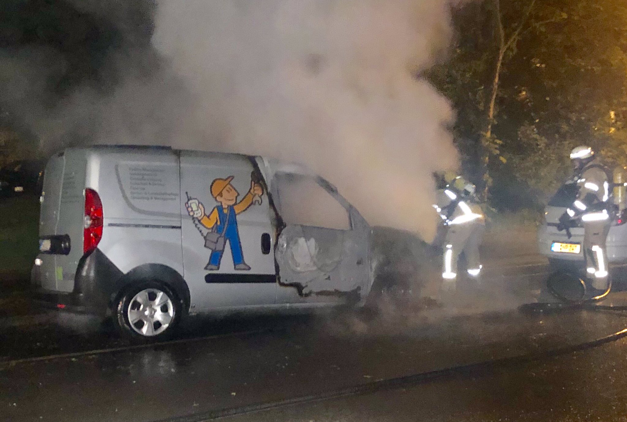 Gegen 3 Uhr rückte die Feuerwehr zu dem Brand aus, wie die Polizei mitteilte. Der in der Rathausstraße abgestellte Kleintransporter eines Dienstleistungsunternehmens stand bei Eintreffen der Rettungskräfte im vorderen Bereich in Flammen.