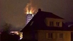 Polizeiangaben zufolge waren Unbekannte in der Nacht zum Sonntag gewaltsam in das 13-stöckige Hochhaus eingedrungen und hatten die Mobilfunkanlagen auf dem Dach gezielt in Brand gesetzt. Laut Polizei entstand bei dem Feuer ein Sachschaden in sechsstelliger Höhe. Von den Tätern fehlt bislang jede Spur.