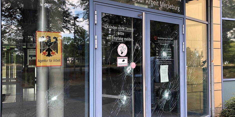 In der Nacht zu Samstag haben Unbekannte das Gebäude der Agentur für Arbeit und des Jobcenters des Saalekreises in der Geusaer Straße in Merseburg mit Steinen angegriffen. Mehrere Glastüren und Fenster bis hinauf in den ersten Stock wurden dabei beschädigt.
