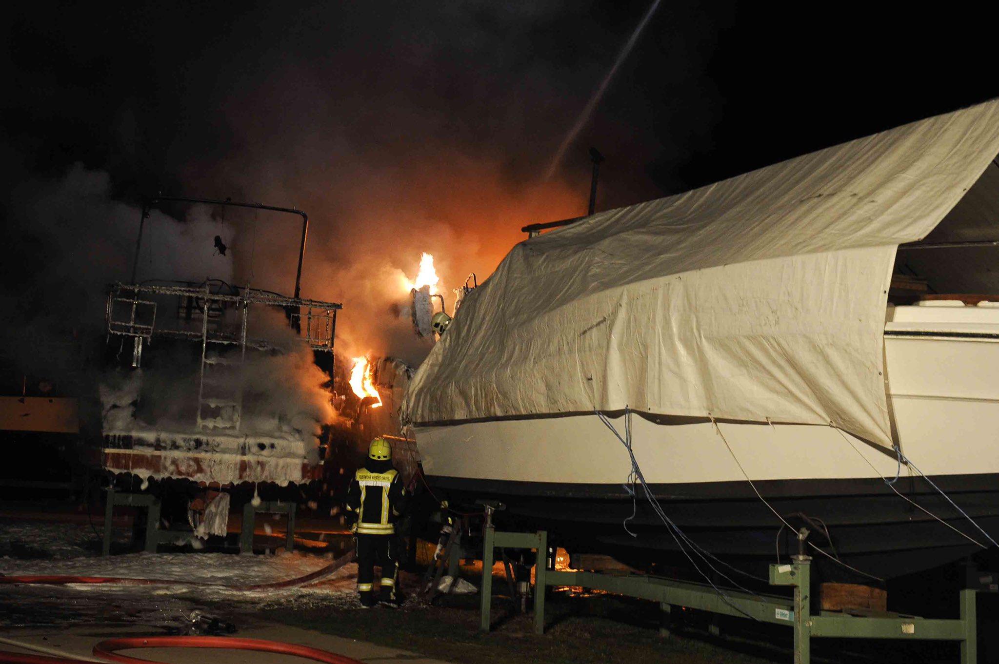 Kriminaltechniker und ein externer Brandgutachter haben vor Ort die Untersuchungen zu Brandursache aufgenommen. Die Flammen und die extreme Hitze beschädigten zwei weitere Boote stark. Der Schaden soll sich auf rund 360.000 Euro belaufen.