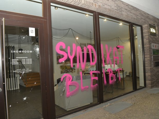 in der verganenen nacht wurden außerdem die scheiben an zwei verkaufsbüros („showrooms“) für ziegert-immobauten in der flottwellstraße beschädigt