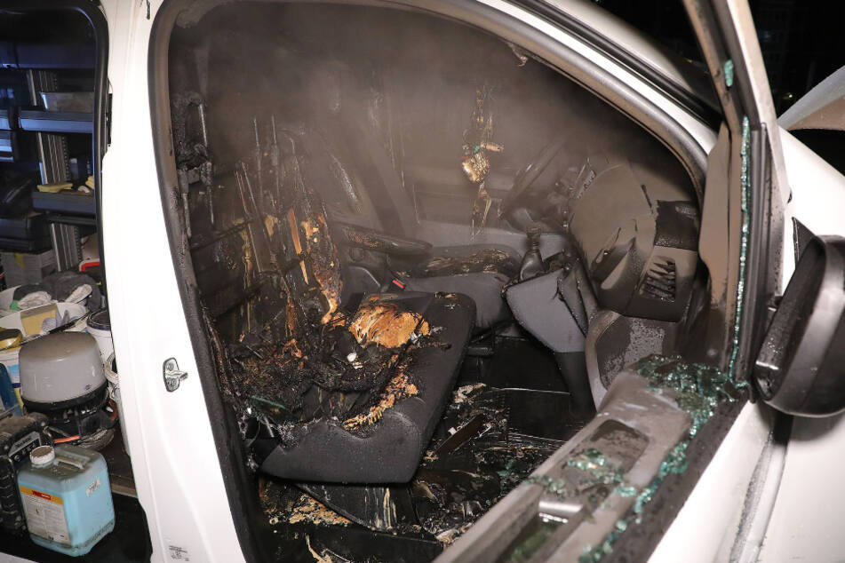 Als die Berufsfeuerwehr der Wache Albertstadt eintraf, konnten die Kameraden den brennenden Opel Vivaro mit Strahlrohren schnell löschen.