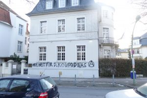 Wir haben das griechische Konsulat in Frankfurt/Main markiert und mit der Parole „Freiheit für D. Koufontinas“ versehen. Wir rufen zur Solidarität mit dem Hungerstreik von Dimitris Koufontinas auf.