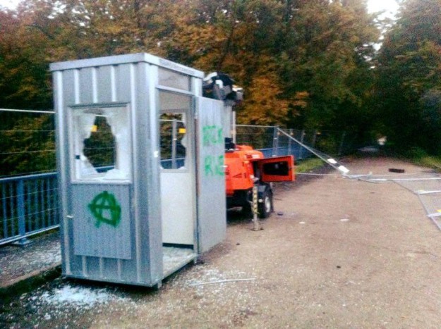 Als direkte Reaktion auf die Festnahmen demontierte eine Gruppe von etwa 30 Menschen den restlichen Zaun, und entglaste einen LKW. Im weiteren Verlauf wurden beide Autobahnbrücken, die dem Sicherheitsdienst als permanente Stützpunkte dienen, attackiert, und die dort befindlichen Lichtanlagen, Generatoren und Aufenthaltsräume . Die Securities waren aufgrund der Groesse der Gruppe nicht in der Lage, zu reagieren.