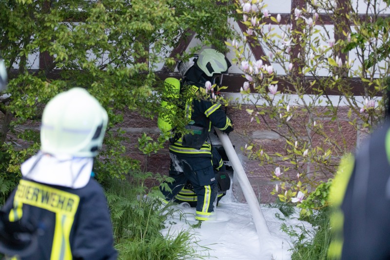 Die Polizei geht von Brandstiftung aus und ermittelt in alle Richtungen. Nach ersten Informationen soll ein Brandsatz ein Feuer im Keller des Gebäudes ausgelöst haben. Zwei Personen sind nach Angaben einer Polizeisprecherin vom Tatort geflüchtet. Nach ihnen werde gesucht. Feuerwehr und Polizei waren am Morgen gegen 4:30 Uhr informiert worden.