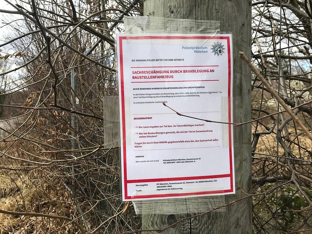 Vorfall schockt auch Mitstreiter der Bürgerinitiative „Rettet den Eggarten“Münchner Beamte hatten in den frühen Morgenstunden die Feuerwehr alarmiert, die das Feuer wenig später löschen konnte. Die Schadenshöhe wird auf 150.000 Euro geschätzt. Die Ermittlung hat nun das Kommissariat 43 (Staatsschutzdelikte) übernommen.