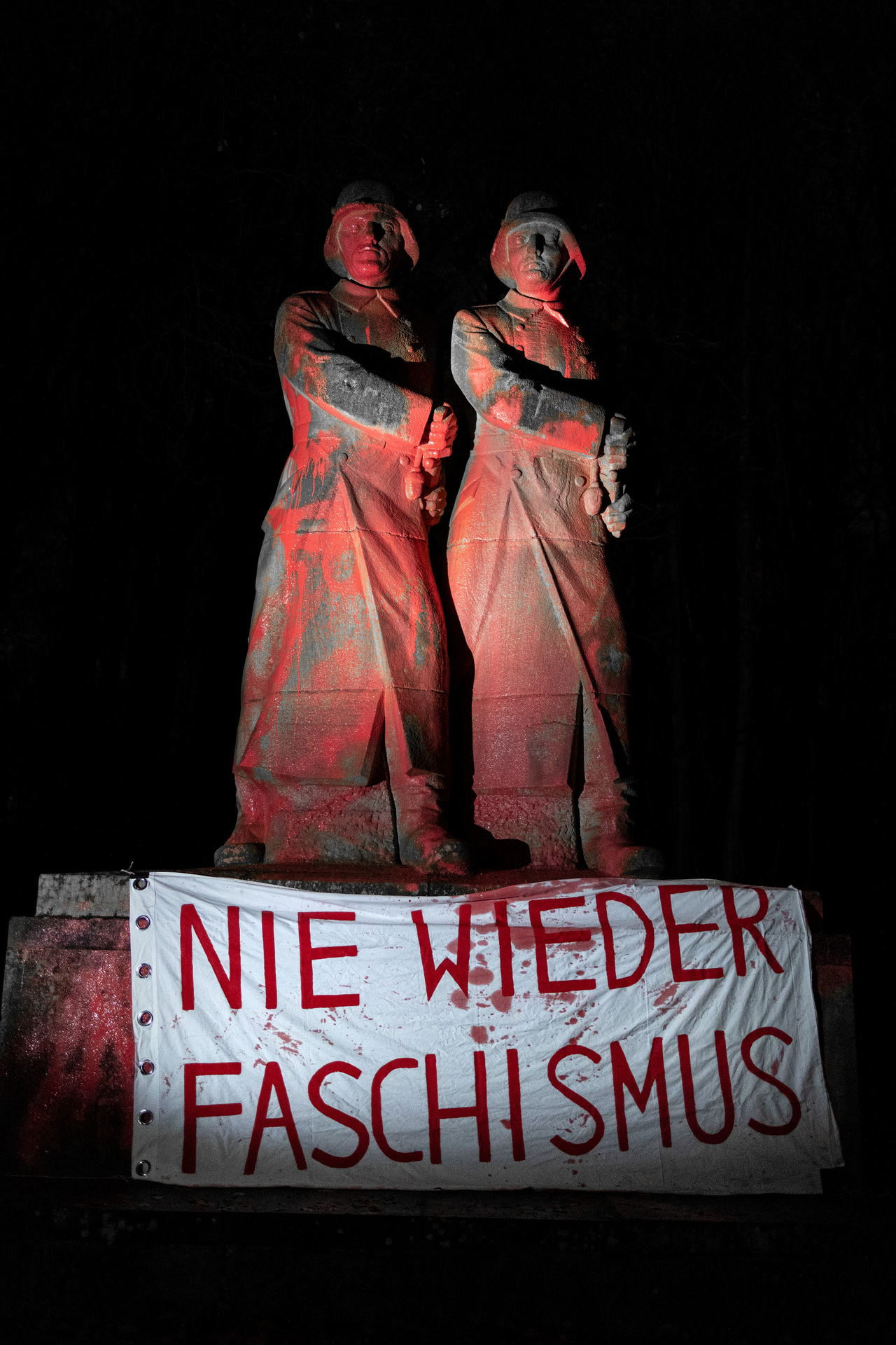 Wir fordern, dass das Nazidenkmal und diese furchtbare Tafel, die 2004 aufgestellt wurde, abgerissen werden!