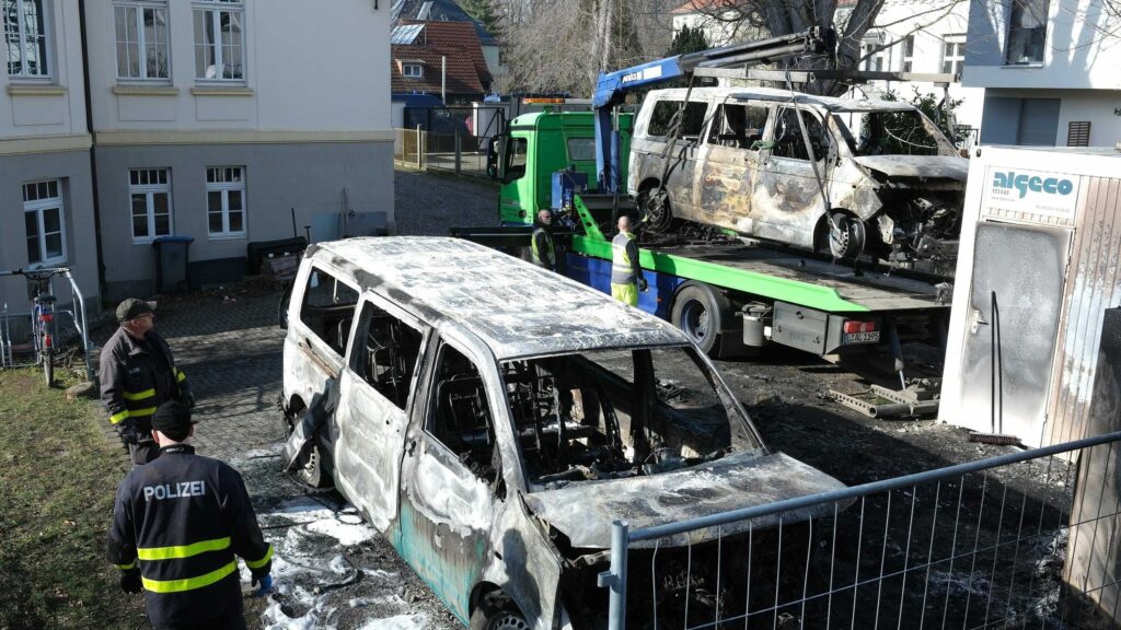 Brandanschlag auf vier Fahrzeuge des Staatsbetriebs Sachsenforst! Schaden: mehr als 100 000 Euro. In der Nacht zu Donnerstag standen auf dem Gelände an der Heilemannstraße 1 zwei VW-Transporter, einen Nissan und einen Suzuki in Flammen.