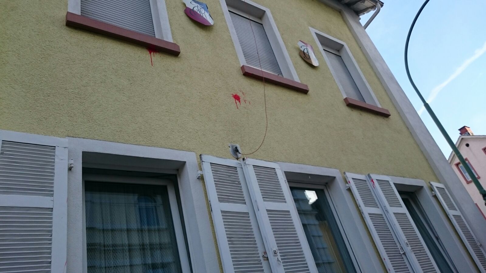 Das Verbindungshaus der Landsmannschaft Cimbria et Rhenania zu Friedberg wurde zwischen Weihnachten und Neujahr von Unbekannten mit roten Farbbeuteln beworfen. Da zwischen den Jahren keine Mitglieder der Verbindung anwesend waren, kann der Tatzeitpunkt nur auf einen Bereich innerhalb dreier Tage, vom 27. bis 30. Dezember eingegrenzt werden.