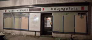 Außerdem soll eine Gruppe von 30 bis 50 Vermummten das Büro des Neuköllner Quartiermanagements in der Hobrechtstraße angegriffen und verwüstet haben. Mit Steinen und Farbbomben zerstörten die Täter die gesamte Front des Büros. In beiden Fällen ermittelt nun der Staatsschutz.Bereits in der Nacht zum Samstag hatten 20 bis 40 Maskierte auf Fahrrädern am Kreuzberger Gleisdreieck-Park randaliert und 28 Autos beschädigt. Am Samstagmittag erschien dann ein Bekennerschreiben auf einer von Linken und Autonomen genutzten Webseite.