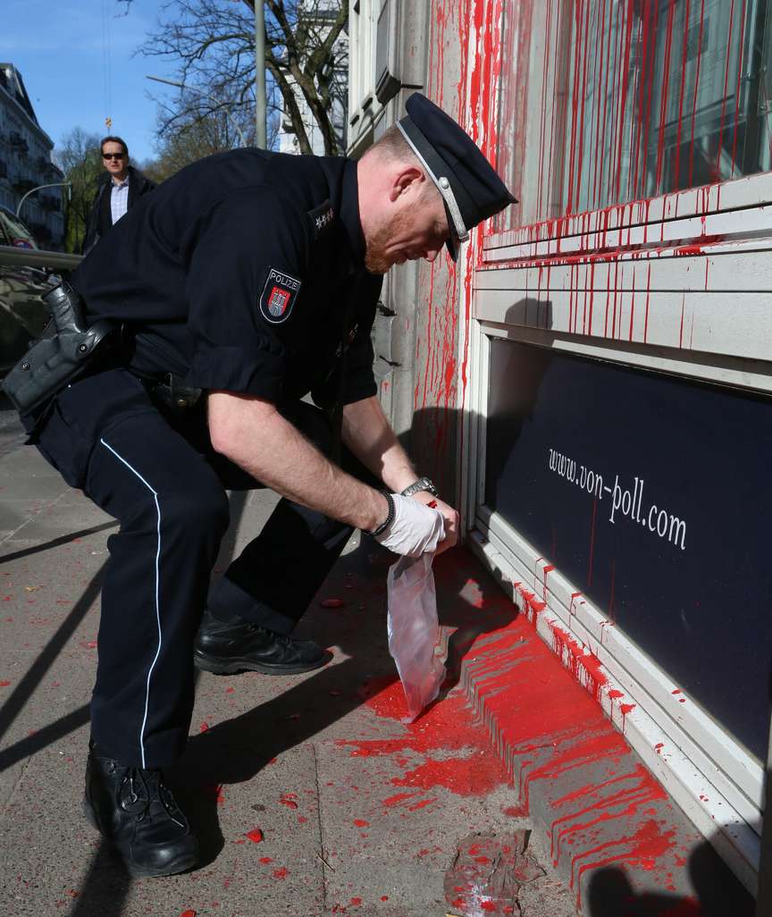 Im Vorfeld der EZB Einweihungsfeierlichkeiten wurde laut einer Angriffserklärung im Netz am 17. März der „Sitz der von Poll-Immobiliengesellschaft verwüstet und das großzügige Maklerbüro für längere Zeit unbrauchbar gemacht“. Dort heißt es weiter: „Als Exklusivpartner von Christie’s International Real Estate, der Maklersparte des renommierten Auktionshauses hat sich von Poll auf das lukrative Geschäft mit Luxus-Immobilien in bevorzugten Wohn- und Geschäftslagen konzentriert.“