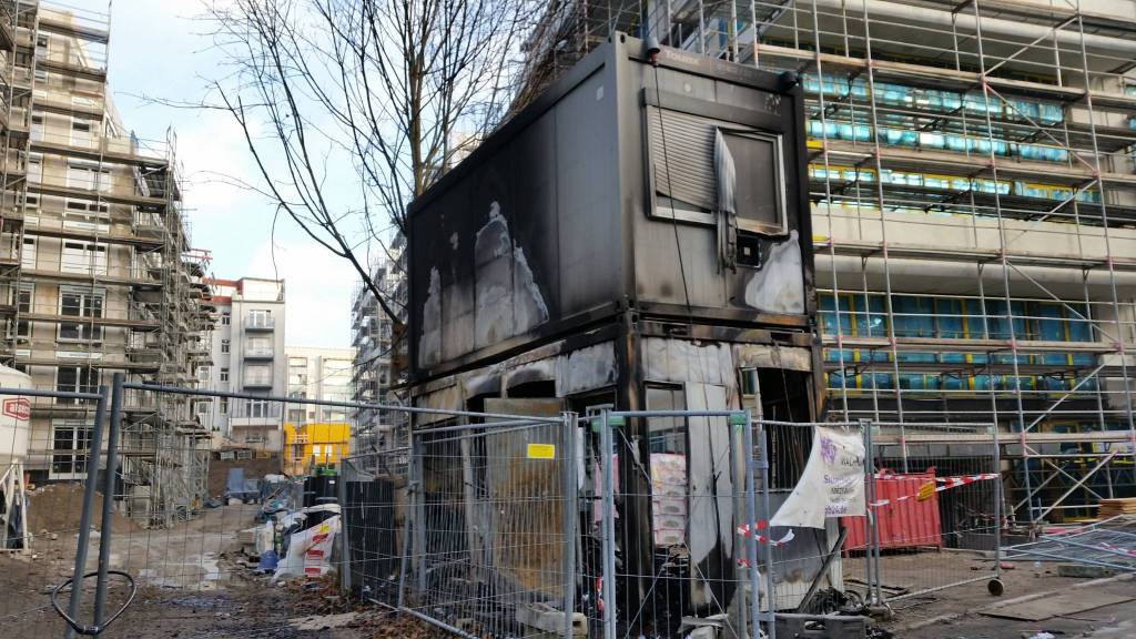Damit nicht genug: Die laut Polizei “aggressive Personengruppe” zog weiter zu einer Baustelle in der Liebigstraße. Dort bewarfen die Chaoten einen Wachmann mit Steinen, kippten den Bauzaun um und schleuderten Brandsätze in das Auto des Wachmanns und in einen Baucontainer. Der Baucontainer brannte vollständig aus und der Wagen wurde stark beschädigt.