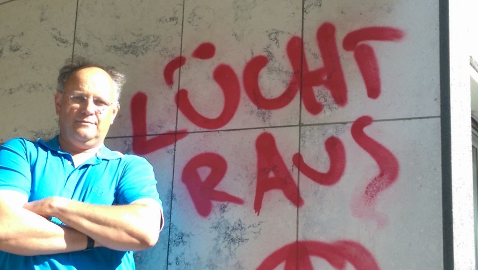 „Während meines Urlaubs wurde ein Farbanschlag auf mein Büro verübt. Personen wurden gottlob nicht verletzt. Aber es gab am Gebäude durch eingeworfene Fensterscheiben und durch Lackfarbe erheblichen Sachschaden. Die Nachbarn sind sicherlich zutiefst beunruhigt. Das verstehe ich völlig. Vermutlich haben viele bis dato noch gar nicht mitbekommen, dass der linke Flügel der Politik sich gewaltbereite Schlägertruppen hält. Diese firmieren unter dem Signe der Antifa und versuchen Unbeschultene Bürger und deren Kommunalpolitiker zu bedrohen. (…)“