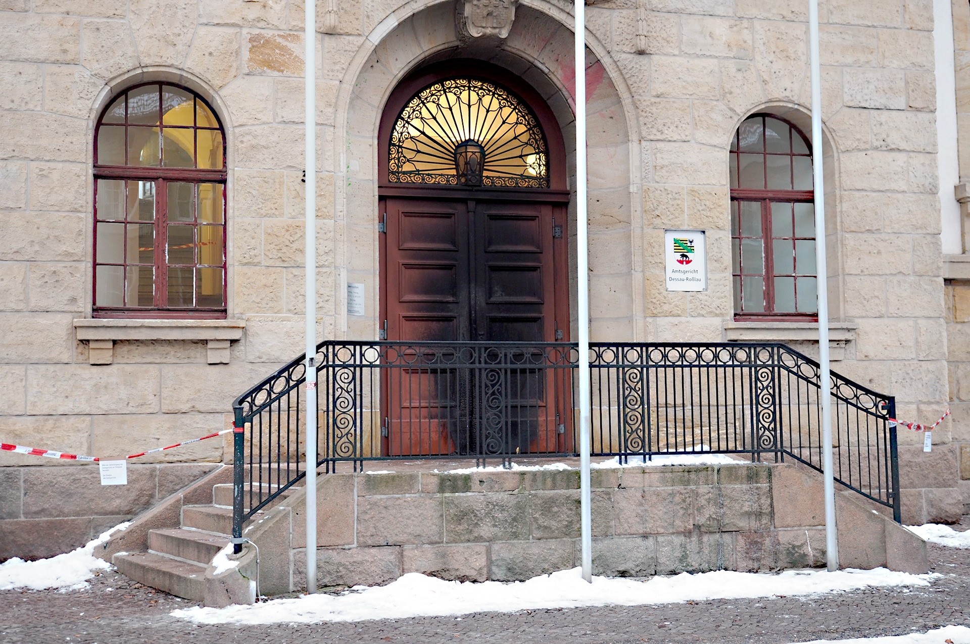 Le 19 janvier 2017 à Dessau, nous avons mis le feu aux portes du palais de justice, du tribunal régional et du bureau du ministère public. Les flics maltraitent, assassinent et la justice d’Etat les soutient en couvrant et en minimisant leurs actes.