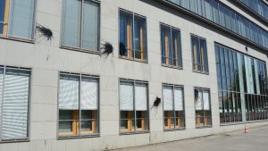 Das Haus der Deutschen Wirtschaft steht aber für weit mehr als dieses Treffen im Rahmen des G20. Mit der Bundesvereinigung der Deutschen Arbeitgeberverbände (BDA), dem Bundesverband der Deutschen Industrie (BDI) und dem Deutschen Industrie- und Handelskammertag (DIHK), haben hier die einflussreichsten Lobbyisten der Deutschen Wirtschaft ihr zu Hause. Diese Verbände sind treibende Kraft im System der Ausbeutung und über die Grenzen Deutschlands hinaus mitverantwortlich für Lohnsklaverei, Armut und Kriege. Hier sitzen die Profiteure der kapitalistischen Krise, die auf dem Rücken der zur Arbeit Verdammten dicke Gewinne einstreichen. Dieser Ort ist Ausdruck von Macht und Herrschaft über unser Leben.Deswegen haben wir in der Nacht zum 1.Juni das Haus der Deutschen Wirtschaft mit Farbe beworfen und mit Steinen durchlöchert.