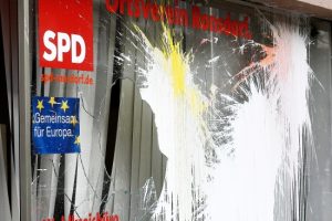 Nella notte dal 8 al 9 aprile abbiamo fornito vetri rotti e vernice alle sedi locali dei partiti CDU, SPD e FDP. La SPD e la CDU governano a livello federale e la CDU e FDP nel Nordreno Vestfalia.