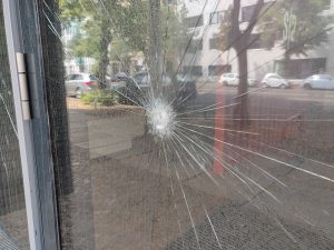 Mehrere vermummte Täter seien gegen 2.05 Uhr auf das Gebäude zugestürmt, hätten acht Fensterscheiben zerstört und an Fassade und Gehweg eine schwarze klebrige Masse auf einer Fläche von etwa 30 Quadratmetern hinterlassen, so die Polizei. Anschließend flüchteten die Täter in unbekannte Richtung. Verletzte gab es nicht.Motiv unklar