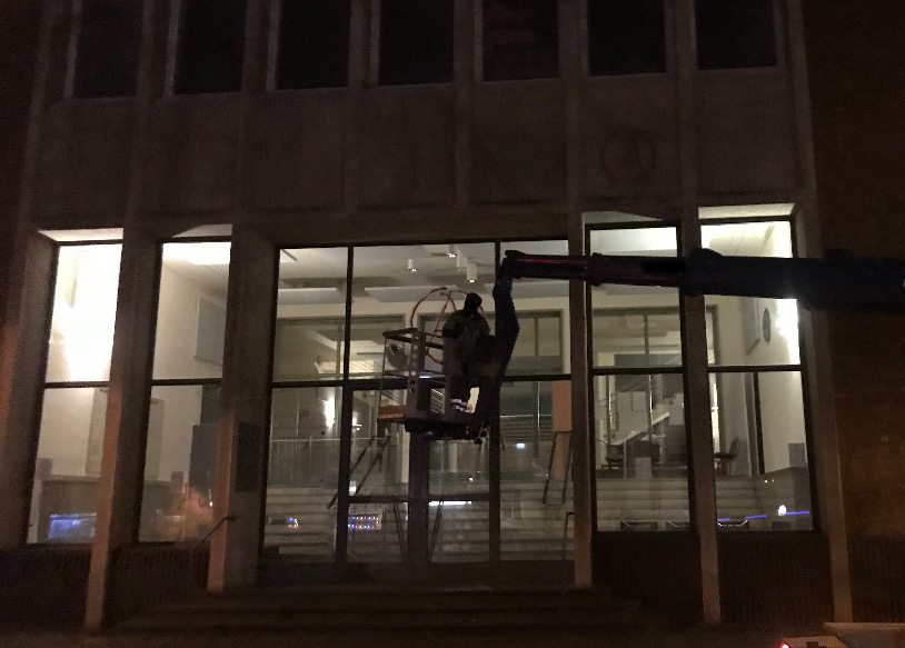 Bei beiden Aktionen wurde von uns eine mobile Hebebühne eingesetzt um die Farbe in großer Höhe anzubringen und so mehr Aufmerksamkeit zu bekommen.