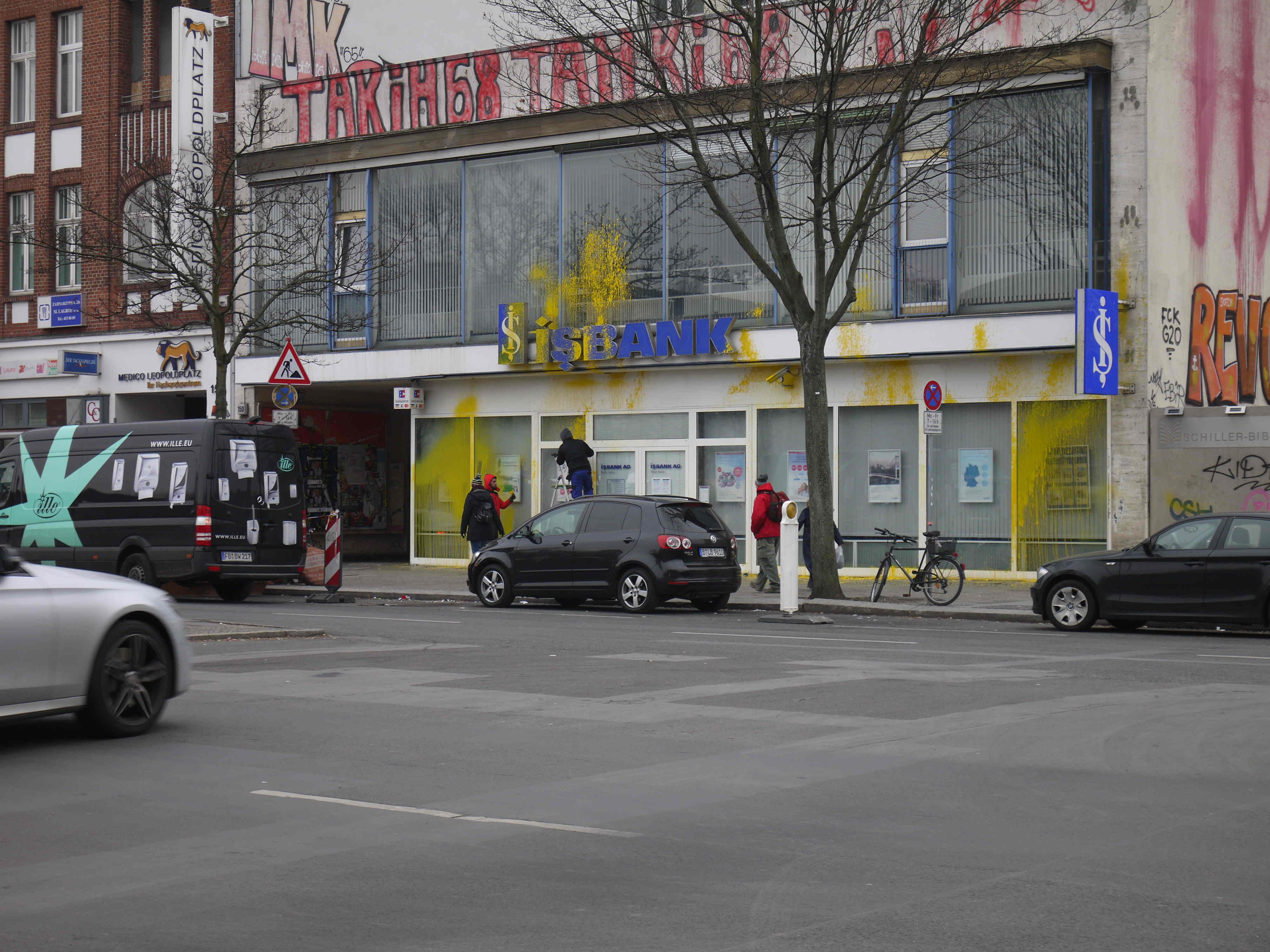 Zwar unterstützen und finanzieren verbündete Großmächte die Türkischen Vernichtungskriege, es ist jedoch türkisches Kapital, dass am meisten dazu beisteuert. Also hat es diese Nacht eine weddinger Filiale der größten türkischen Staatsbank getroffen. Türkiye İş Bankası, eine Aktiengesellschaft, gehört zu den zehn umsatzstärksten türkischen Unternehmen, und ist somit direkt beteiligt am finanzieren der Misere.