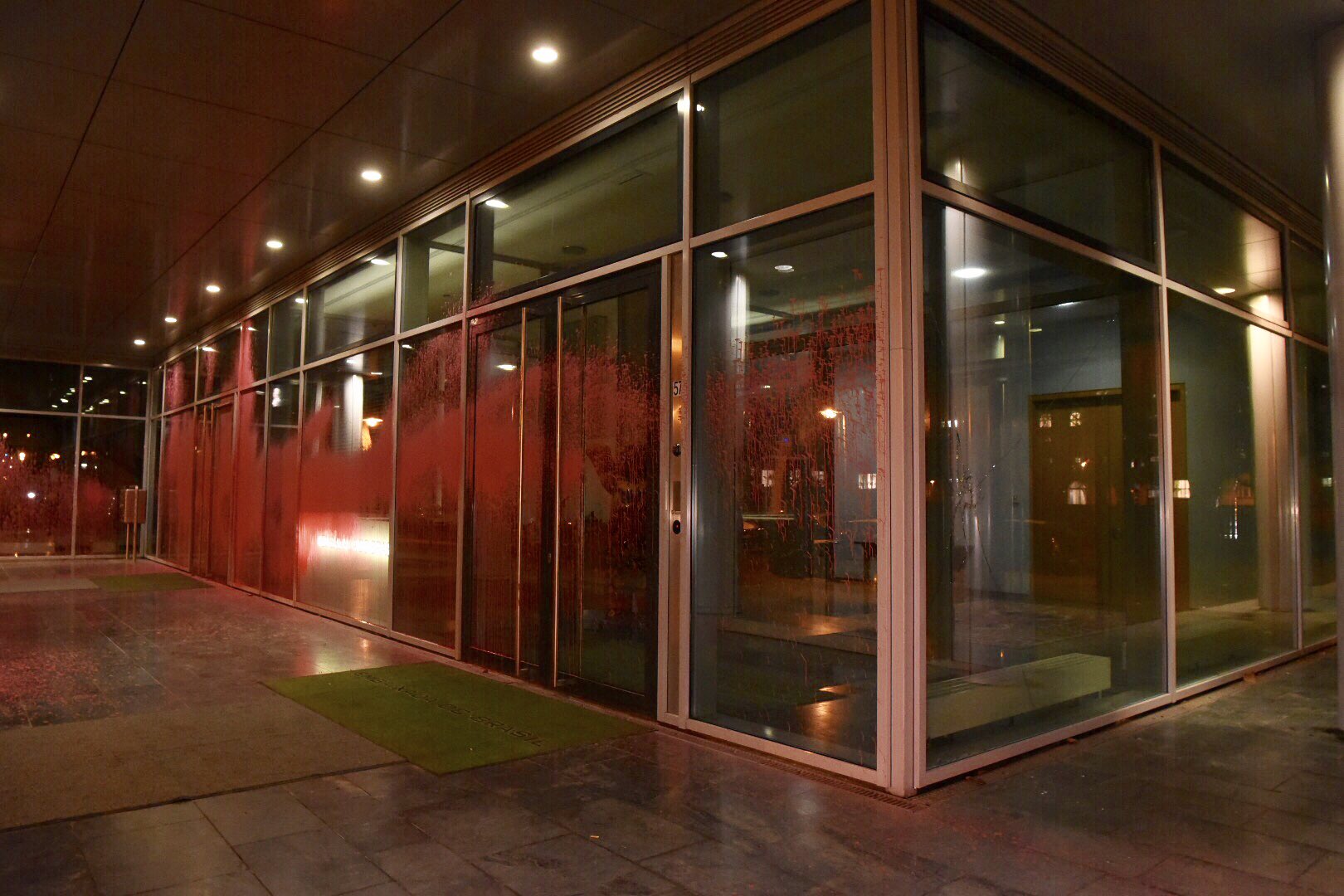 Dabei wurden 16 Fenster zerstört. Der Staatsschutz hat die Ermittlungen übernommen, da es sich um eine politisch motivierte Tat handeln könnte. Es werde auch geprüft, ob es einen Zusammenhang zu dem Angriff auf das Amazon-Gebäude in der nahen Krausenstraße am Donnerstagmorgen gebe, hieß es weiter.