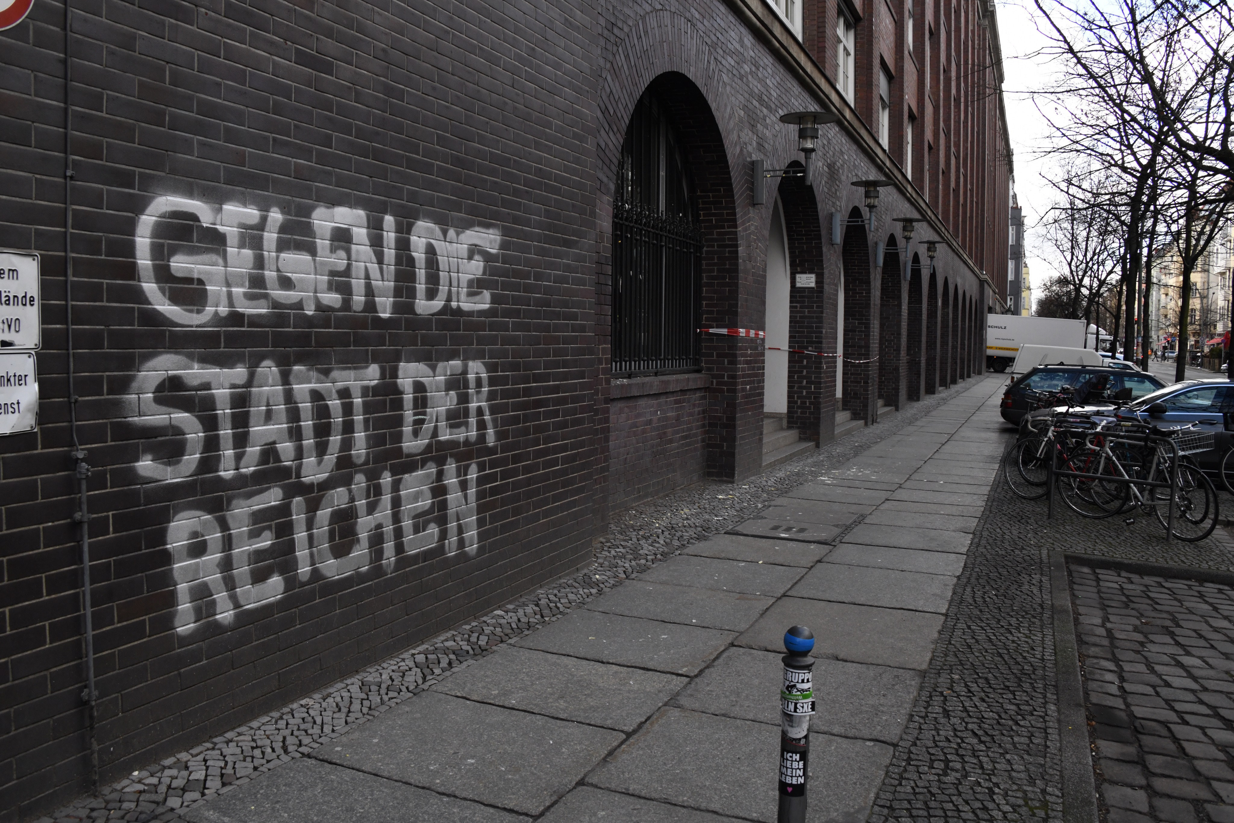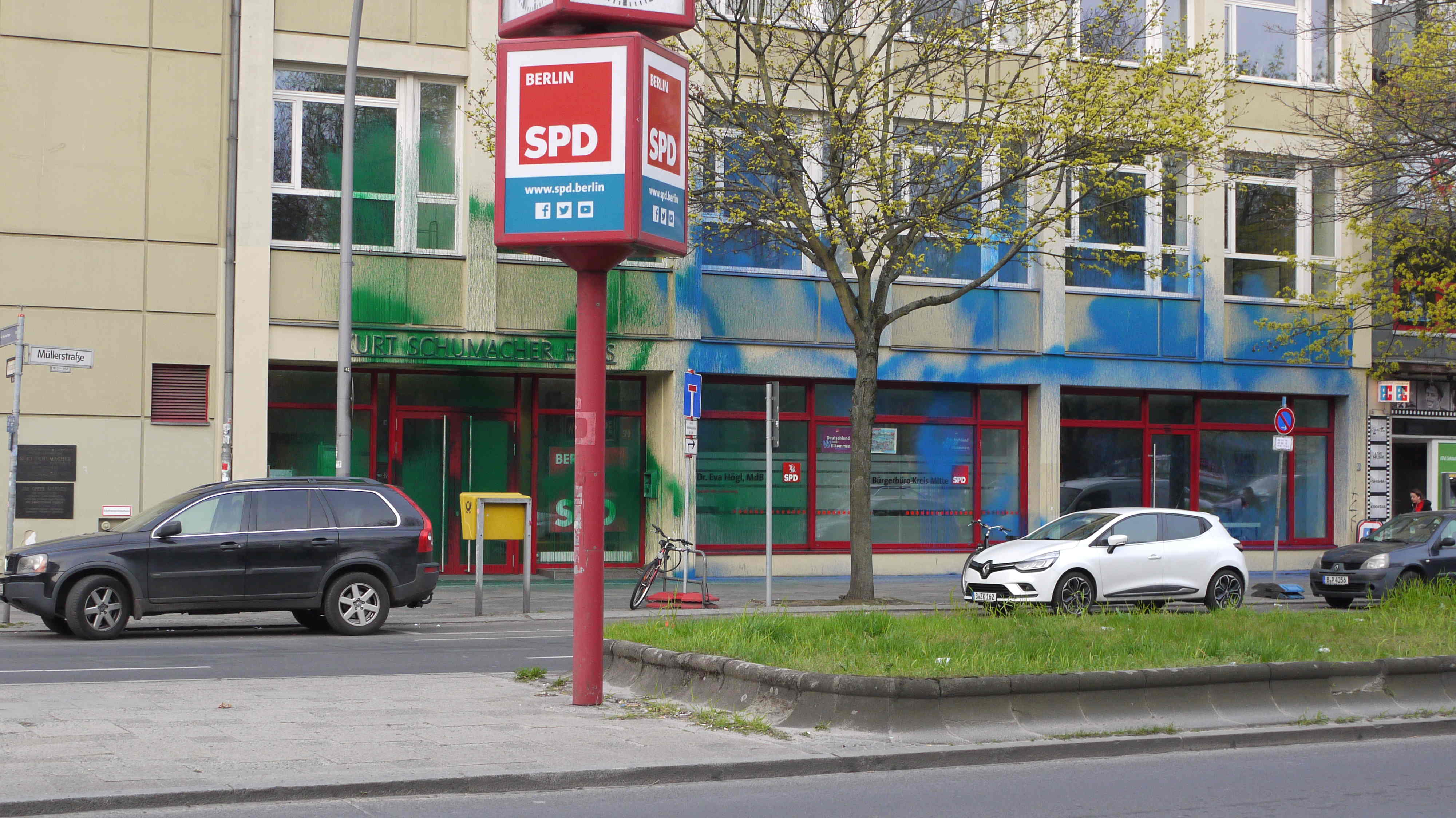 Eine Partei die schon die ganze Zeit mit die Verantwortung für die Verdrängung und den Ausverkauf dieser Stadt trägt ist die SPD. Sie ist es welche auch schuldig ist an all dem was rund um den mörderischen Wohnungsmarkt passiert. Und nicht nur das, es ist eine Partei, die die Verantwortung an dem Tod unzähliger Menschen trägt durch ihre Zustimmung an Waffenexporten, Mitgestaltung und Sicherung der Mauern Europas, Hartz4, heraus zögern der Energiewende, Kriegseinsätze (z.B. Afganhistan/Kundus), etc. (…) Akteurinnen der Verdrängung angreifen (…) Gegen die Stadt der Reichen (weiterlesen und Video der Aktion: Indymedia / Indymedia mit Tor)