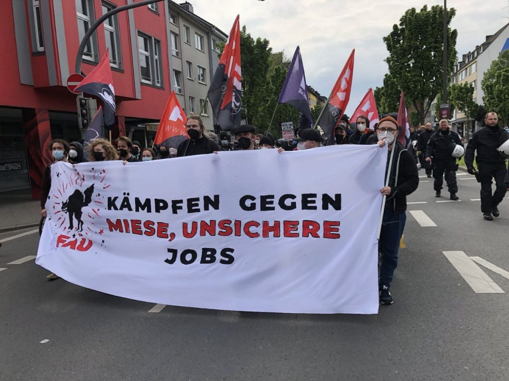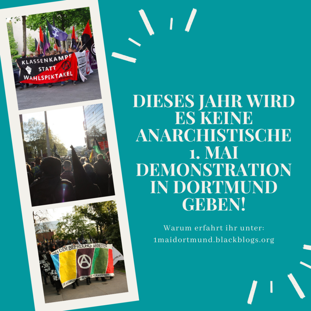 Wie 2021 haben wir in Dortmund erneut den 1. Mai in schwarz und rot getaucht. Der anarchistischen Bewegung in Dortmund und ganz NRW ist erneut ein großer Mobilisierungserfolg geglückt. Über Monate haben wir tausende Materialien auf unseren Straßen verteilt und sind aktiv mit unseren Nachbar*innen ins Gespräch gekommen, um sie für unseren Kampftag zu gewinnen. Dass dieses Mal sogar noch mehr Menschen als letztes Jahr mit uns auf die Straße gegangen sind, hat unsere Erwartungen übertroffen und zeigt, dass unsere Anliegen von vielen Menschen geteilt werden.