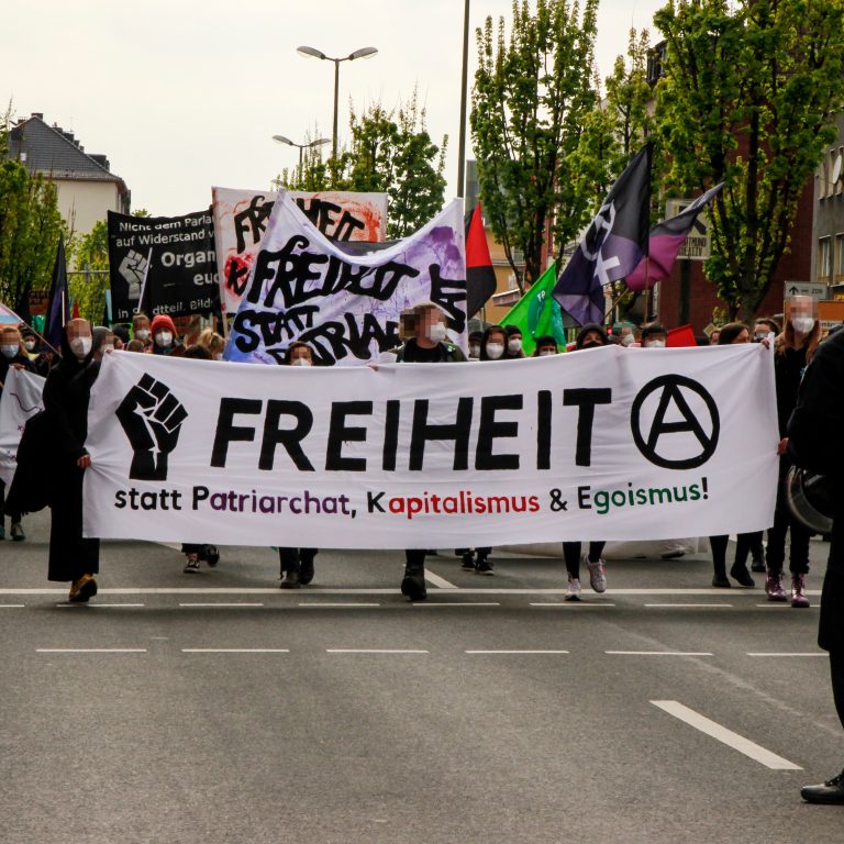 Unter dem Motto „Freiheit statt Patriarchat, Kapitalismus und Egoismus“ haben wir gestern mit bis zu 800 Menschen bei der anarchistischen 1. Mai Demonstration demonstriert.