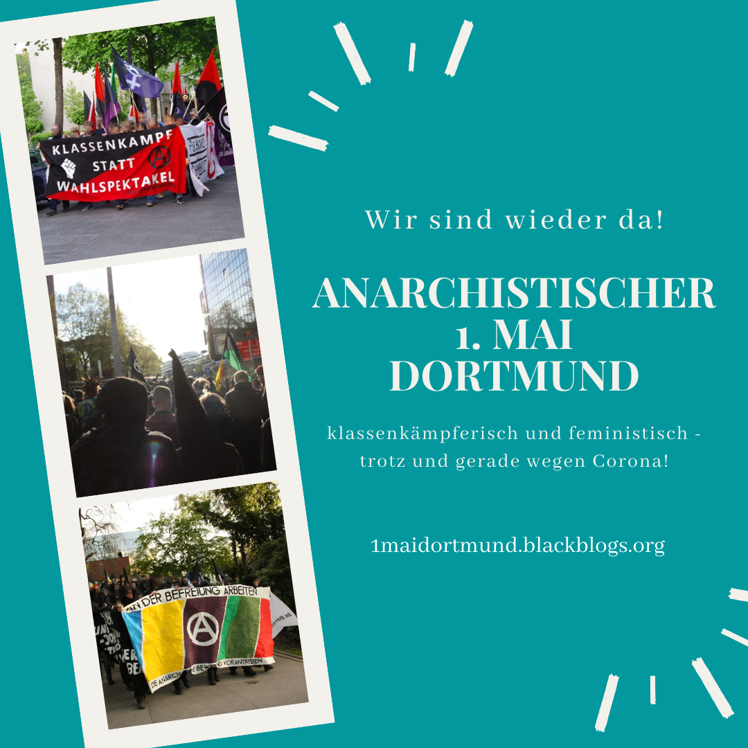 Letztes Jahr musste durch die Corona-Pandemie die vierte anarchistische 1. Mai Demonstration in Dortmund abgesagt werden. Dieses Jahr werden wir uns nicht davon abbringen lassen. Dieses Jahr machen wir deutlich: Wir leben! Die anarchistische Bewegung lebt! Klassenkämpferisch und feministisch – trotz und gerade wegen Corona!