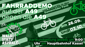 Die Aktion soll gleichzeitig eine Solidaritätsbekundung sein: mit den Widerständen gegen die Rodung des Dannenröder Forstes, des Herrenwaldes und anderer Wälder, welche diesen Herbst der geplanten Weiterführung der A49 weichen sollen. Denn diesen Oktober soll der nächste Bauabschnitt der umstrittenen Autobahn begonnen werden. Dazu sollen Wälder gerodet, Felder versiegelt und eine Autobahntrasse durch ein Natur- und Trinkwasserschutzgebiet gebaut werden.