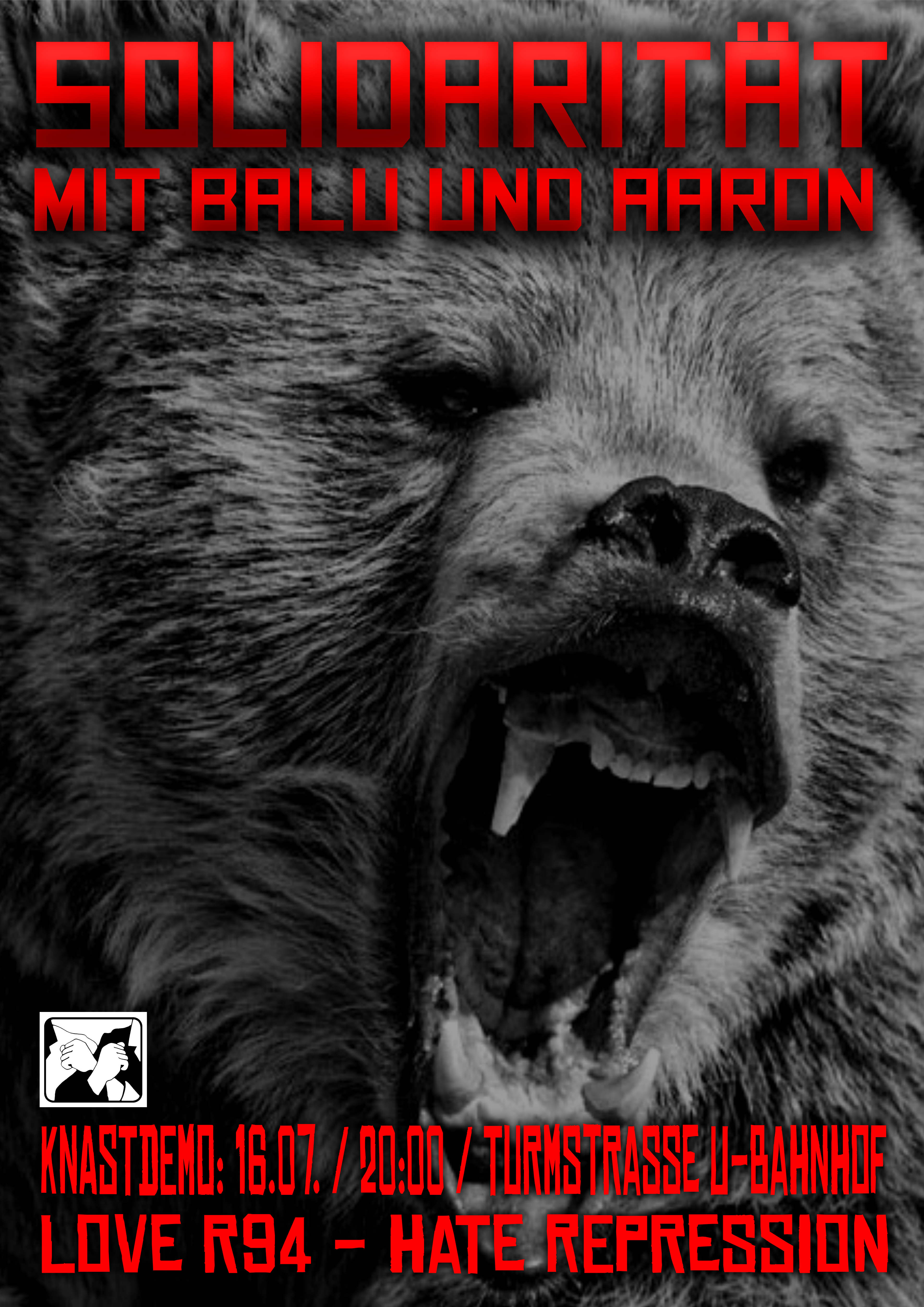 Leider müssen wir euch mitteilen, dass unsere Gefährten Balu und Aaron seit dem 09.07.2016 in Berlin in der JVA Moabit in Untersuchungshaft immer noch sitzen. Sie wurden am Rande der R94 Solidemonstration „Rigaer 94