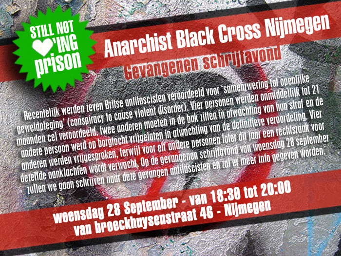 The three green anarchist prisoners held in the Swiss jails decided to join the week of mobilization against the World Economic Forum, which will be held in Switzerland during these days. Marco and Silvia went on hunger strike for 10 days, since 20th to 30th of January 2012. Billy is abstaining from prison food and refusing to work (working is compulsory in Swiss jails), against the WEF but also as a response to their prison conditions, more precisely for the liberation of Marco Camenisch in May 2012 and against the presence of divisory glass in the visits of friends. Continue reading Marco, Silvia en Billy in hongerstaking tegen het WEF