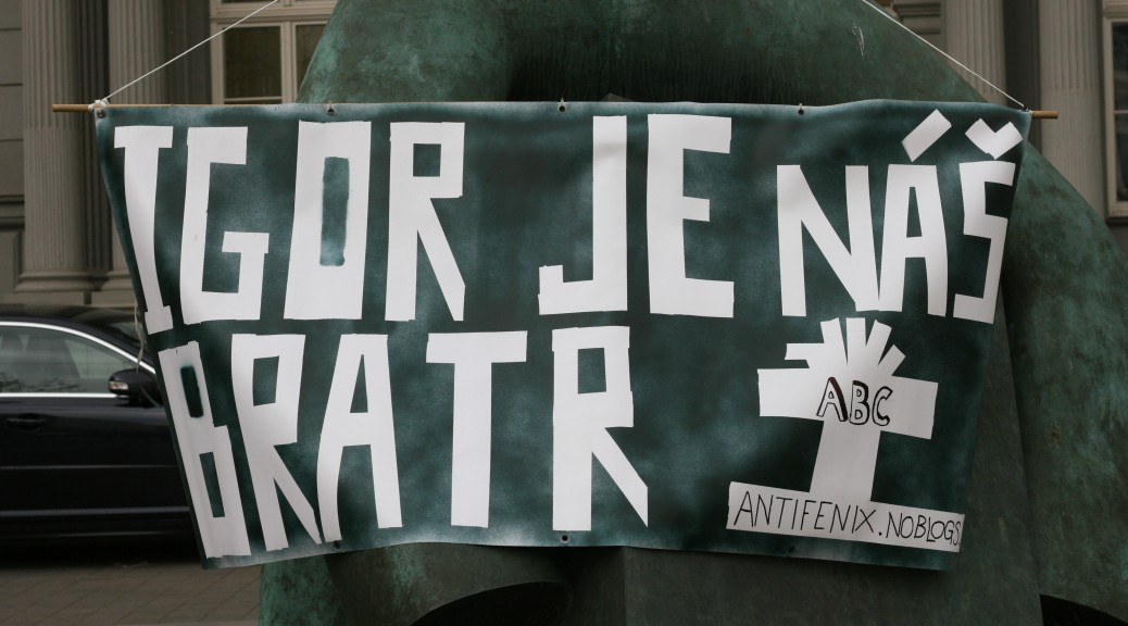 Een strijd waarin hij nooit de libertaire kameraden die gevangen gehouden worden door de Spaanse staat (en de rest van de wereld) zal vergeten; in het bijzonder Mónica Caballero, Francisco Solar, Claudio Lavazza, en de compañera die werd gearresteerd op 13 april in Barcelona en nu wordt geconfronteerd met uitlevering aan Duitsland.