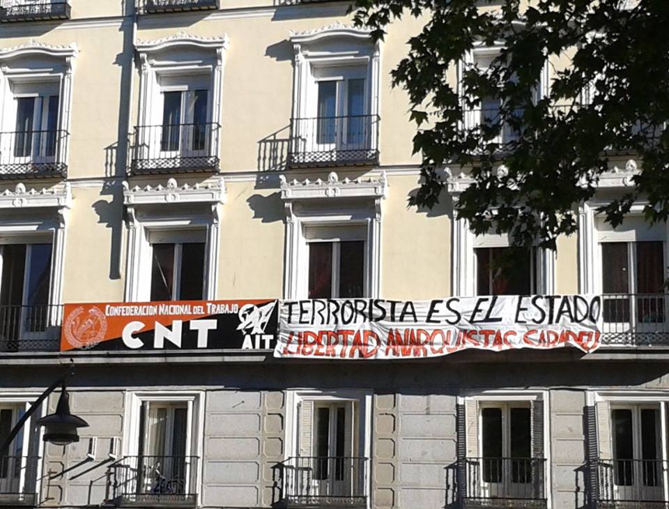 Wat het verdere verloop van de juridische procedure ook mag zijn, willen wij publiekelijk onze steun uiten aan deze kameradin. We eisen haar revolutionaire doelen, haar strijd en haar militante activiteit op als de onze. We kennen haar goed, we weten dat ze kan rekenen op de solidariteit van allen. Ze is een anarchiste in strijd die al jarenlang actief is in verschillende antiracistische, feministische en libertaire projecten in Barcelona, altijd solidair met mensen die getroffen worden door de repressie, altijd bereid om in de mate van het mogelijke te helpen, altijd ondernemend, altijd genereus, vrolijk en glimlachend met haar naasten, altijd onverzettelijk en vastberaden tegen alles wat ze ziet als onrechtvaardig.