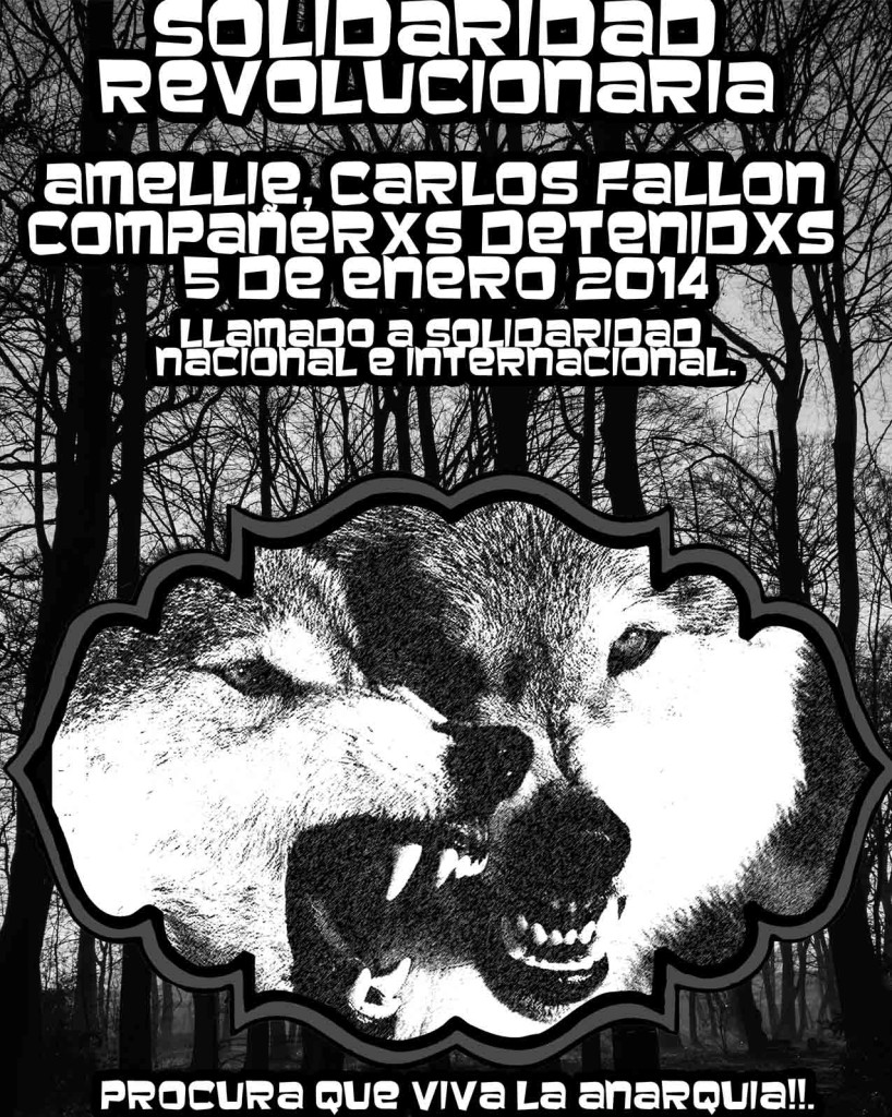 After waiting almost all morning, they were finally informed that an arrest warrant was executed for the offense of damage to others’ property, in the form of “arson in a building with some person inside.” The three comrades did not make a statement, and once the hearing was over, they were brought back to the prisons where they’re being held since February 2014 (Carlos to the Reclusorio Oriente, Amélie and Fallon to Santa Martha), after having spent 40 days in federal custody through the arraignment procedure. Continue reading Mexico City: New charges against anarchists Amélie, Fallon and Carlos, imprisoned since January 5th, 2014 (Mexico)