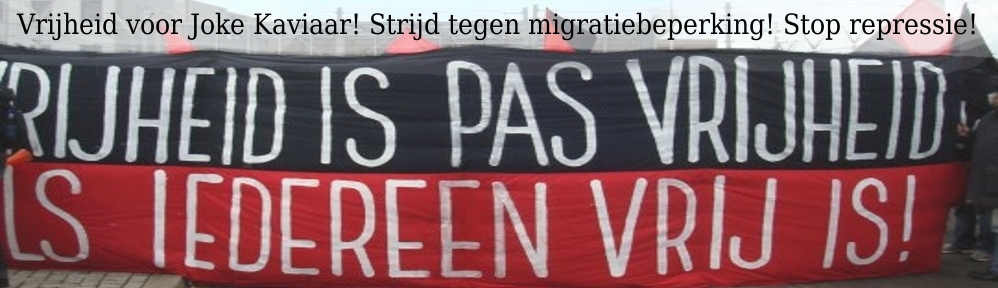 Komende donderdag 15 mei, dient bij het gerechtshof in Amsterdam het Hoger Beroep in de rechtszaak van de staat tegen Joke Kaviaar. Zij werd op 22 januari 2013 tot 4 maanden cel veroordeeld wegens het schrijven en verspreiden van vier teksten waarin zij de onderdrukking, vervolging, opsluiting en deportatie van vluchtelingen/ migranten zonder papieren, aanklaagt en tot actief verzet oproept.