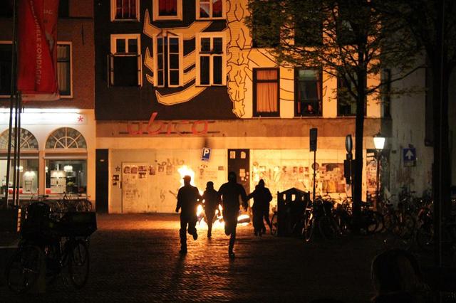 Na maanden van rechtszaken, waarbij de criminele speculant en eigenaar Vloet de krakers uit het pand probeerde te krijgen, werd afgelopen vrijdag 24 mei de laatste rechtszaak verloren: vanaf de maandag daarna kon de Ubica ontruimd gaan worden. Vloet heeft al duidelijk gemaakt niets met het pand te gaan doen en toch moest één van de weinige autonome plekken die Utrecht kent verdwijnen. Maar rond 23.00 diezelfde vrijdag was de Ganzenmarkt, het plein waaraan de Ubica lag in het centrum van Utrecht, opeens een plek van rebellie. Brandende autobanden, vuurwerk en verfbommen: de krakers hebben besloten niet lamlendig af te wachten op een ontruiming maar zelf het moment gekozen om de laatste strijd om Ubica aan te gaan. Pas rond 15.00 die zaterdag werd de laatste kraker door de politie uit het pand gehaald.(English below) Continue reading Schrijven naar de Ubica arrestanten!