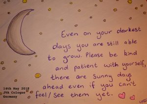 Positivity Shit. Drawing. 14/5/18Note 23/5/18: To whoever needs it, here’s some more positivity. Before I go to bed here I like to think “each day that passes is a day closer to freedom.” I find it hard to be sad about being stuck here when my chances of being free soon increases every day. How many more days I wonder, until I no longer say “soon” but “today”? Hugs and courage. <3 UPIII
