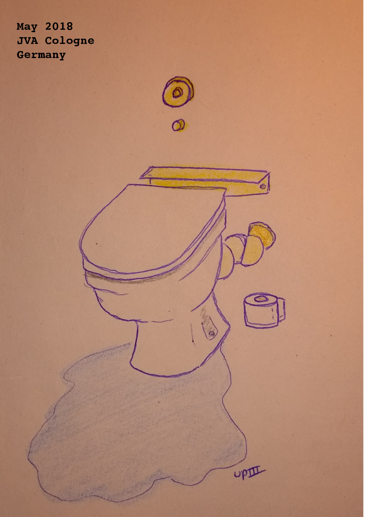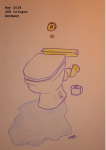Toilet Trouble. Drawing. 5/18Note 23/5/18: This morning my toilet overflowed (I think? I’m not actually sure but there was water everywhere). The guards (thank goodness) organized for someone to come and fix it. Yet, by the time they arrives it had magically fixed itself. I’m starting to think this a prison thing, that things are suddenly fixed by the time help arrives. I’m always sick on Friday, runny nose, fever, sore back among other things and can’t see a doctor until Monday I’m back to health and bouncing around. Strange. I was so worried I broke the toilet this morning, I’m accidentally breaking a lot of things in the last week. My glasses, a bowl and plate, my last hair tie (now I hold my hair up with pencils!) and I’m sure a few more things I’ve forgotten. Not my spirit tough, that is stronger than ever. Maybe my pants will break next, I’ve put on a lot of weight! I can’t wait to be able to walk everywhere again. Soon! <3