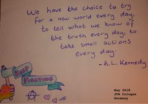 I’m in Germany because I thought “why not? If not me, who? If not now, when?” cliché quote I know but I’m a better person from meeting all of you, from being where I am.