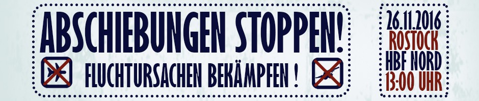 Wir haben einen kleinen Artikel bei linksunten.indymedia.org veröffentlicht, der auf Abschiebungen aus M-V eingeht und die Kontinuität antirassistischen Engagements im Bundesland aufzeigt. Natürlich weisen wir auch auf die Demonstration am 26.11. in Rostock hin. Zu finden ist der Artikel in der Rubrik Texte.