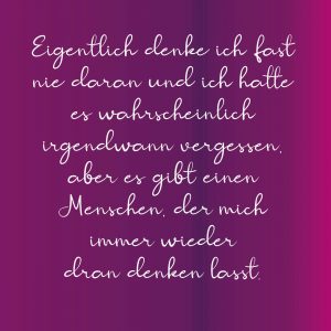 Eigentlich denke ich fast nie daran und ich hätte es wahrscheinlich irgendwann vergessen, aber es gibt einen Menschen der mich immer wieder dran denken lässt.