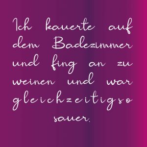Ich hielt die Schmerzen kaum aus. Mein Kreislauf klappte total zusammen und ich brach in kalten Schweiß aus. Ich kauerte auf dem Badezimmer und fing an zu weinen und war gleichzeitig so sauer. Keiner hat mir gesagt, dass es solche Schmerzen werden würden. Ich verfluchte das Ding in meinem Körper. Noch nie, hatte ich solche Schmerzen. Schmerzen, als würde jemand deine Organe aus dem Körper reißen.