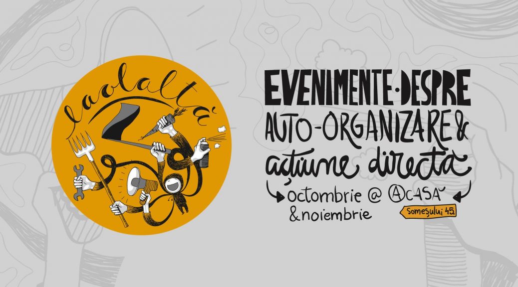 Așadar vrem să organizăm împreună a doua ediție ‚Laolaltă’: să discutăm despre auto-organizare, dinamici de grup, cooperare și cooperative, spații auto-gestionate, proiecte de auto-suficiență, acțiune directă etc. Dacă vrei să contribui și să organizezi un eveniment, dacă ai un atelier pe care vrei să-l ții sau un film pe care vrei să-l proiectezi, așteptăm ideile tale până pe data de 22 septembrie pe adresa [email protected] Evenimentele vor avea loc pe parcursul lunii octombrie.