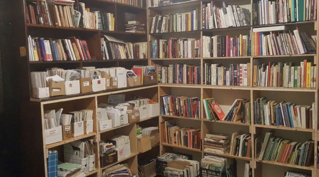 💣Ⓐ Tot aici și-a găsit refugiu și o parte din biblioteca de la Rizom Infokiosk din Cluj (spațiu D.I.Y., punk și HC) care s-a mutat de ceva vreme de la vechiul (și legendarul) beci cu cântări, discuții, party-uri și proiecții. De la Rizom găsiți în bibliotecă multe zine mișto, numai bune de răsfoit și de (re)descoperit.