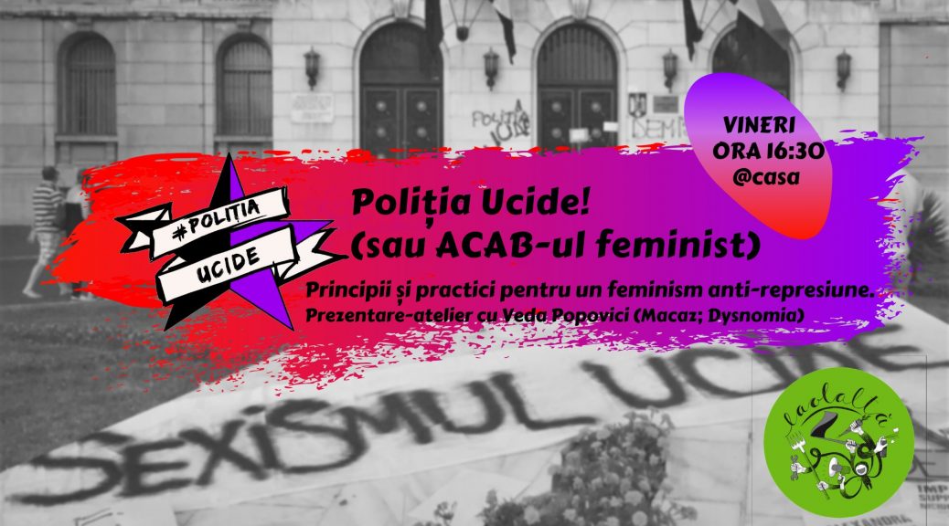 Viziunile feministe din jurul nostru se îndreptă tot mai mult către pedepsirea carcerală a ceea ce este identificat ca parte din ordinea patriarhală însă acest mod de a reacționa ne face complice la sistemele de opresiune. Evenimente recente ca tragedia Alexandrei Măceșanu au revelat o tensiune fundamentală în mișcarea feministă locală: milităm pentru mai multă pedeapsă și supraveghere sau aprofundăm practici anti-poliție, anti-pedeapsă și cu potențial aboliționist față de sistemul penitenciar? În această prezentare-atelier, voi vorbi despre ce posibilități avem pentru un feminism anti-represiune pornind de la practici de de-escaladare și justiție transformativă practicate în colective anti-autoritare ancorate în contextul nostru local.
