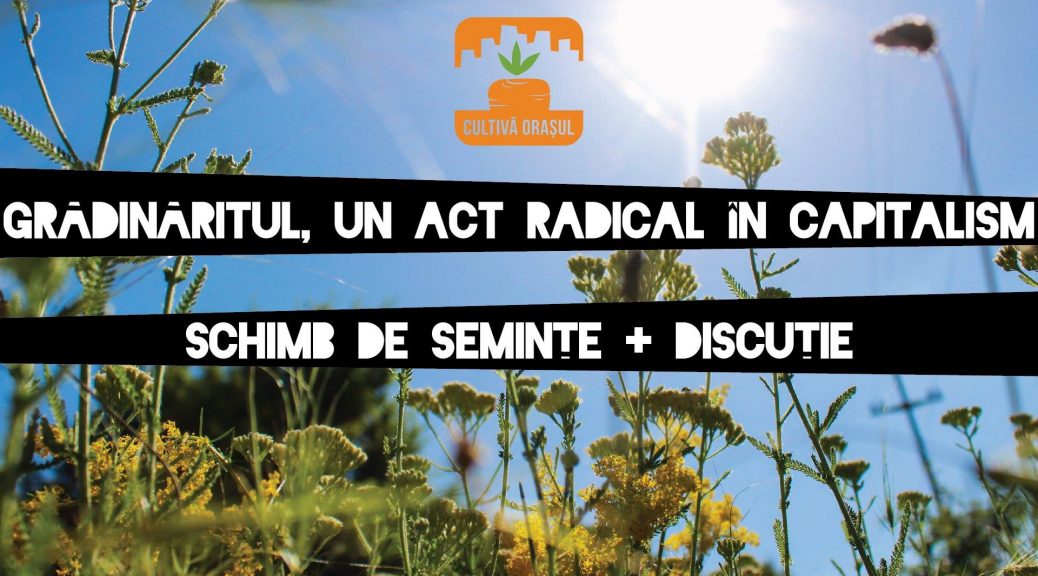 Ce implică grădinăritul urban la nivel de motivare, organizare, strategie și raportare la contextul în care trăim? Care sunt uneltele noastre de acțiune, unde săpăm atunci când terenul e tot mai puțin accesibil, ce vrem să compostăm din sistemul capitalist, ce idei și practici vrem să semănăm și ce rezultate recoltăm la final? Continue reading Grădinăritul, un act radical în capitalism + Schimb de semințe