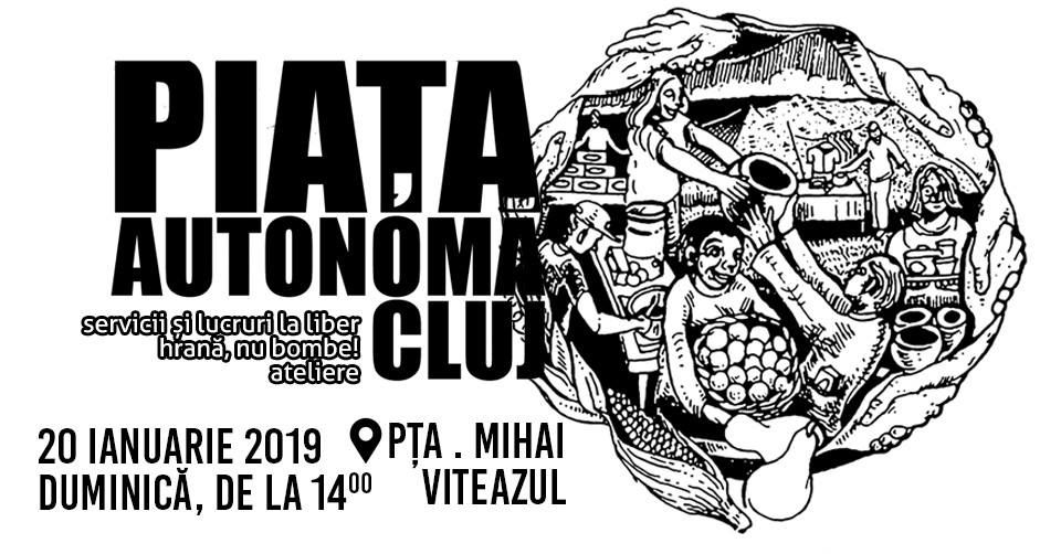 Pentru că dorim măcar pentru câteva ore să creăm un spaţiu cu adevărat liber, unde toată lumea e binevenită şi egală, vă așteptăm la a 19-a ediție a Pieţei Autonome Cluj, duminică 20 ianuarie, în Piața Mihai Viteazul, de la ora 14:00 până la ora 17:00, cu mâncare gătită vegană, haine, obiecte și produse de igienă personală la liber, precum și schimburi de vorbe, experienţe şi îndeletniciri. Continue reading Piața Autonomă Cluj #19