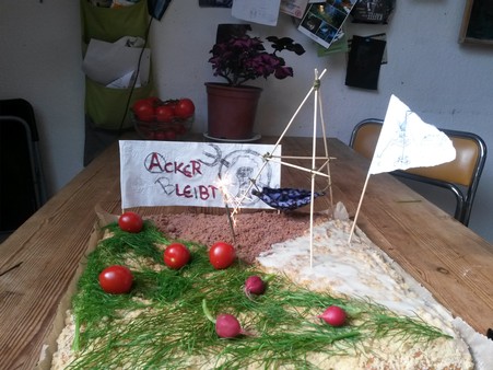 Nach dem ersten Wochenende bestand die Hoffnung, trotz akuter Räumungsgefahr, zumindest eine Woche zu überstehen. Doch dann kam die nächste Woche, und noch eine, und noch eine und mittlerweile besteht die Besetzung schon ein volles Jahr lang. Ein Jahr Ackerbesetzung!