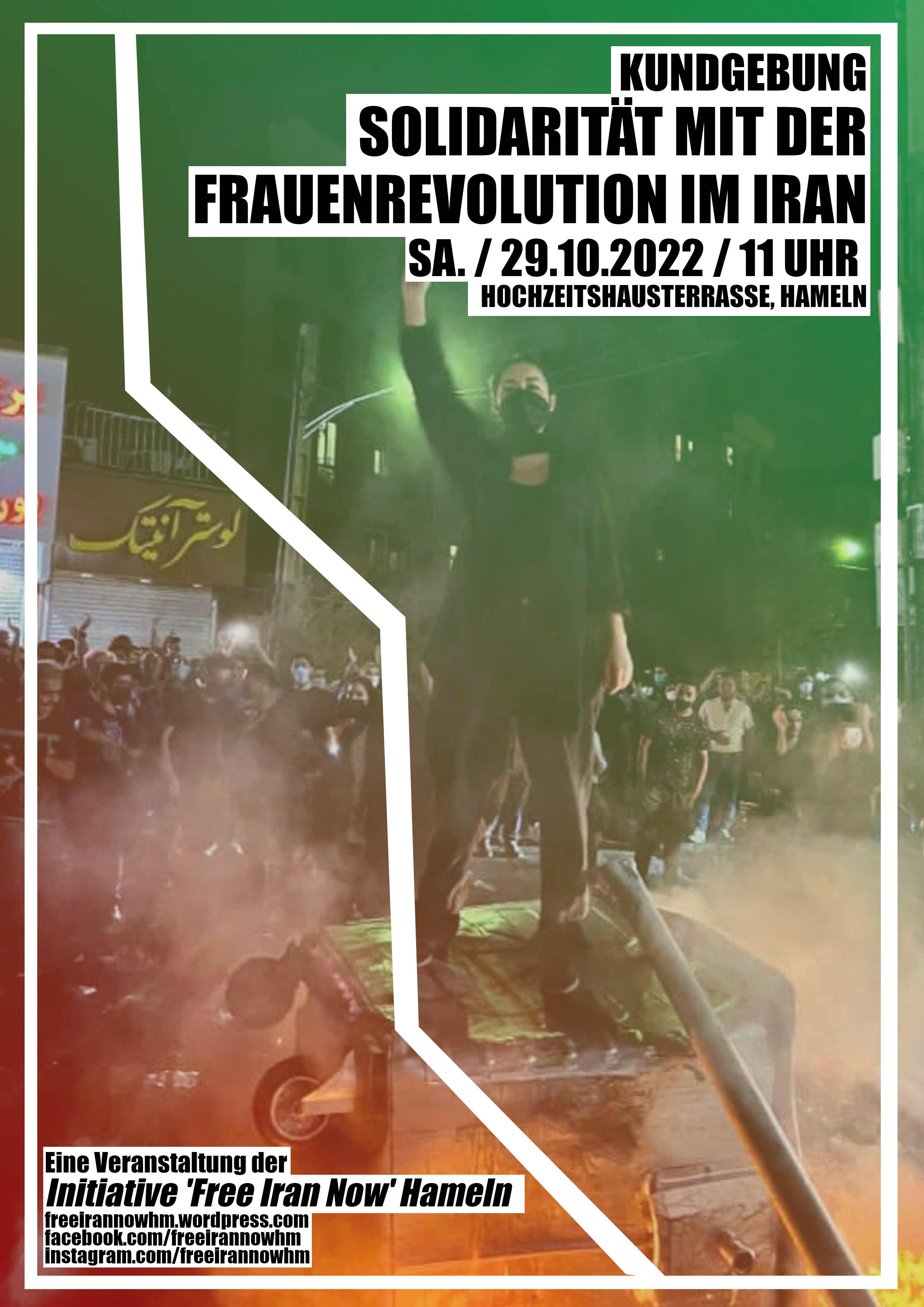 Am Samstag, den 29. Oktober 2022, ruft die Initiative ‚Free Iran Now‘ Hameln von 11 bis 13 Uhr zu einer Kundgebung am Hochzeitshaus in Hameln auf, um ein Zeichen der Solidarität mit der Frauenrevolution im Iran zu setzen.