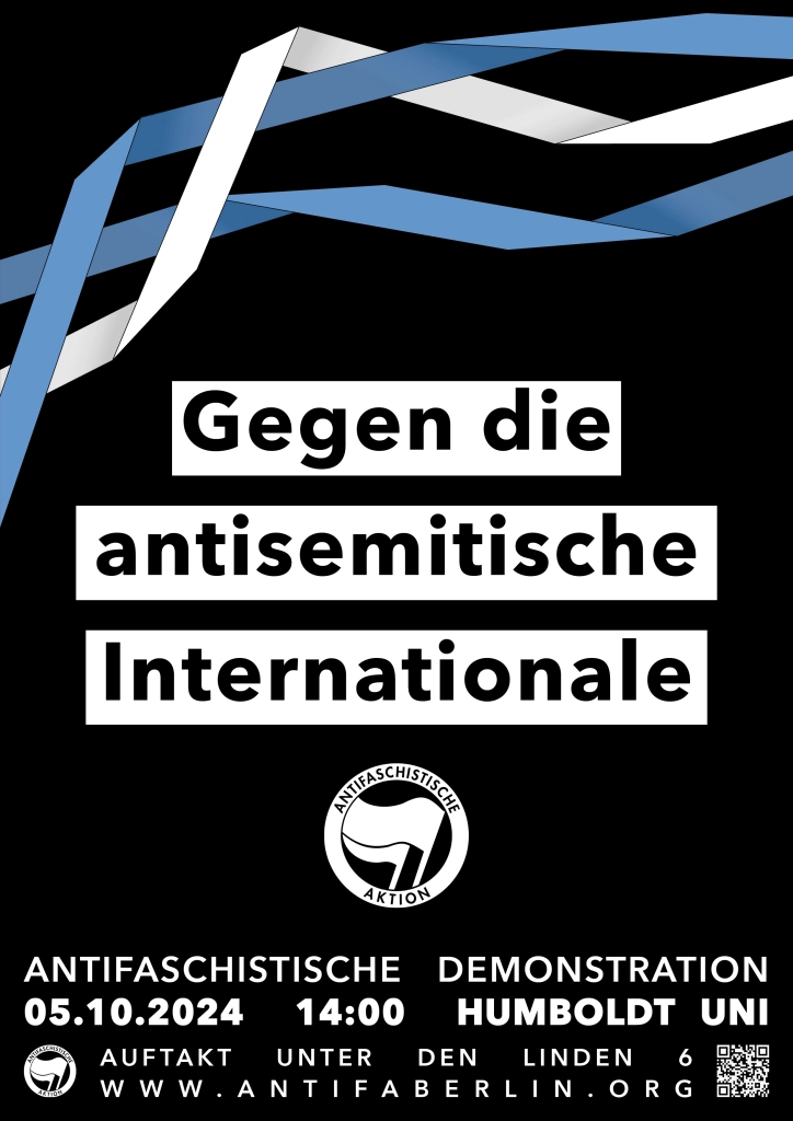 Am 5. Oktober findet in Berlin eine antifaschistische Demonstration „Gegen die antisemitische Internationale“ statt, auf die wir an dieser Stelle sehr gerne hinweisen möchten und deren Aufruf wir im Folgenden dokumentieren: